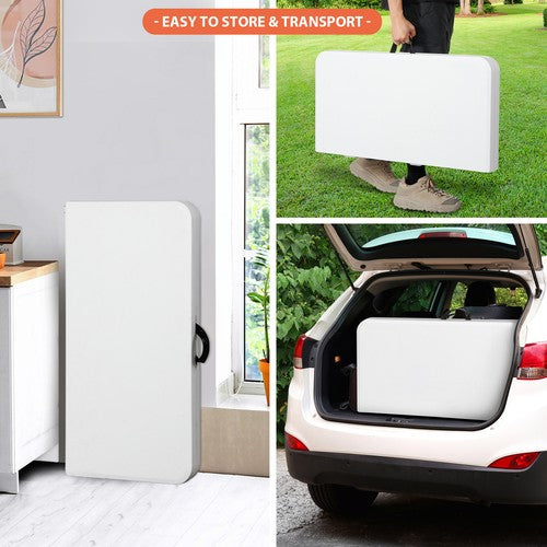 Segawe 34" Portable Plastic Dining Card Table Fold-in-Half w/ Handle Outdoor Party