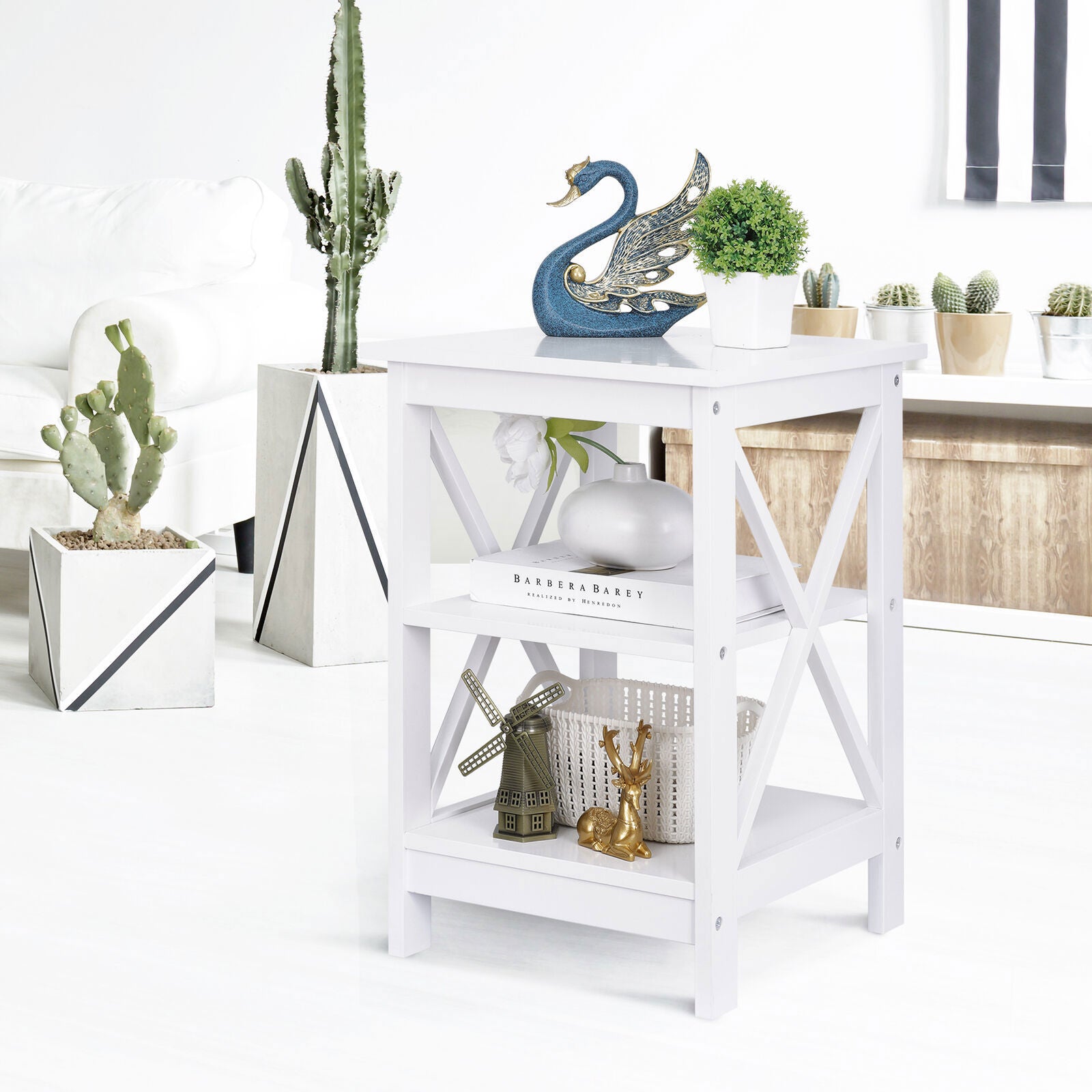 Segawe End Table Sofa Side End Storage Shelf White Stand Living Room Bedroom Furniture
