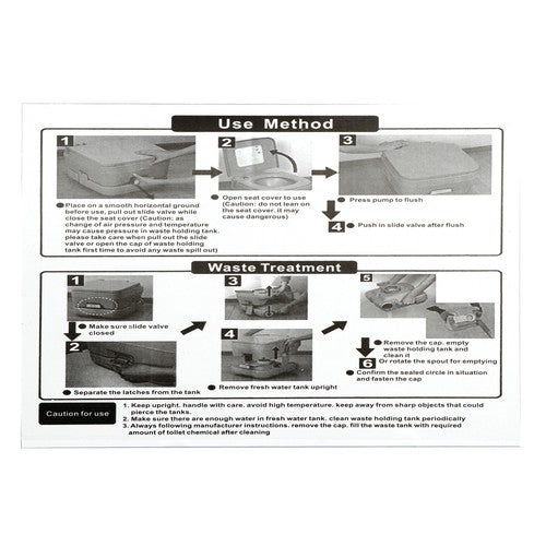 6.6 gallon portable toilet is designed for camping, RVing, boating or any other recreational activity. It is also great as an emergency option on long car rides.