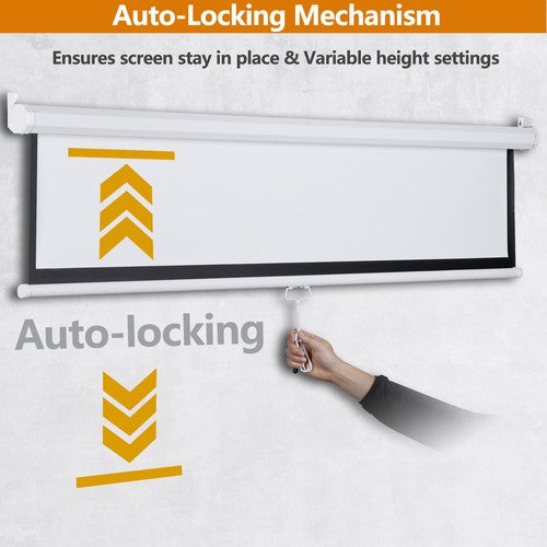 [Auto lock]This manual operation screen features a built-in self lock mechanism, simply pull the screen and it will stay put.