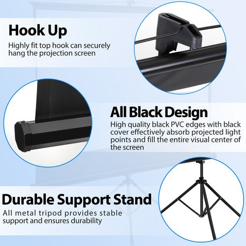 ¡¾Wide Application¡¿Projector screen with stand,perfect for home theater, Backyard,schools, offices, weddings, education, conference room presentation, public display, outdoor movie ;Also can be used for PowerPoint presentations and other displays.