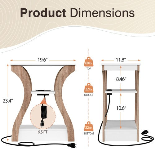 Segawe Set of 2 End Tables Accent Sofa Tables w/Curved Legs & Charging Station White