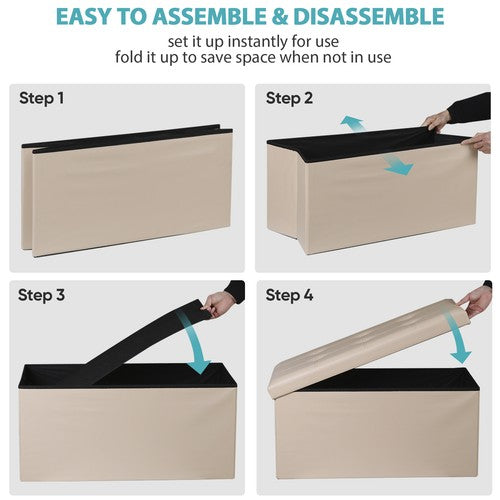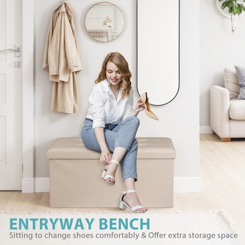 • Segawe 30" Folding Storage Ottoman Footstools with Cover for Living Room Bedroom Beige