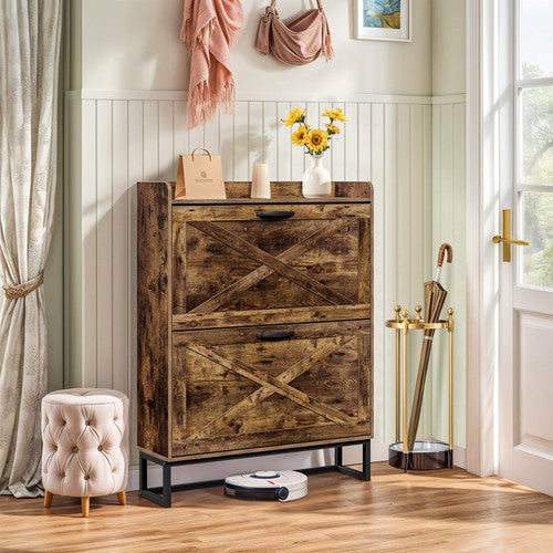• Segawe Metal Shoe Cabinet with 2 Flip Drawers Freestanding Shoe Cabinet Organizer Slim